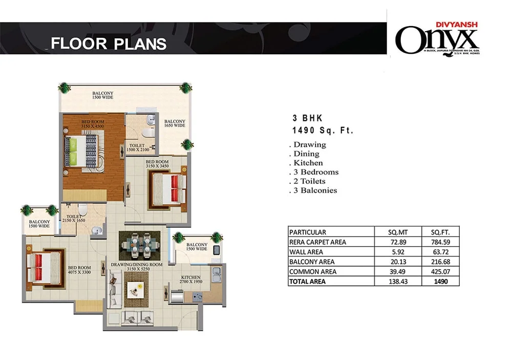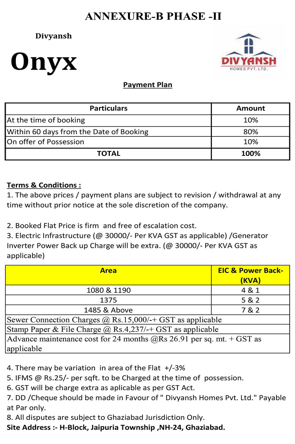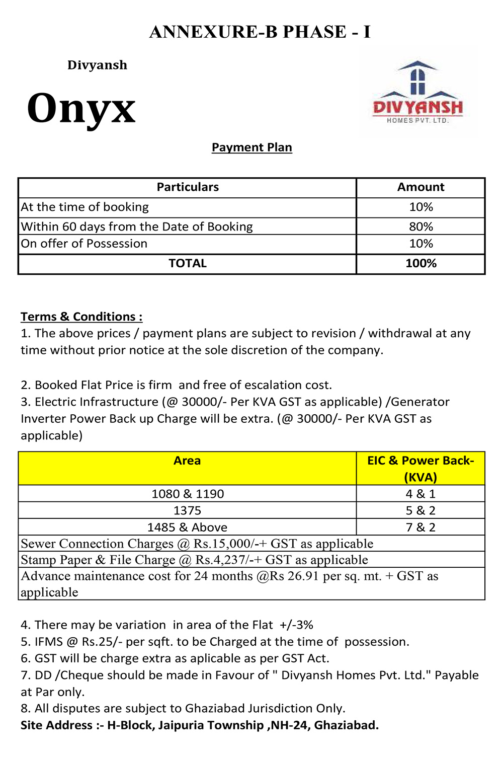 A panoramic tint of nature always attracts home buyers. Divyansh Onyx is such an awesome residential project sited on NH24, Ghaziabad that has several reasons to own a home in the lap of natural ambiance viz. its lush-green surroundings that make this project superb among others, its speculated future values on behalf of modern & decent lifestyle, sizzling beauty of the artistic design of this metro city, futuristic attire of the wider and broader roads/metro/highways/malls/public parks/social security and much more including presently available Shopping Centers, Malls, Food courts, hospitals, international schools, technical and art colleges, community halls, marriage halls, proximity to Shaheed Ashtal Metro Station, NH24 & 09, great connectivity to Noida Sector 62/63, financial institutions, foot over bridge, flyovers, ISBT, Bus stops, smooth and fast traffic to IGI Airport, etc.